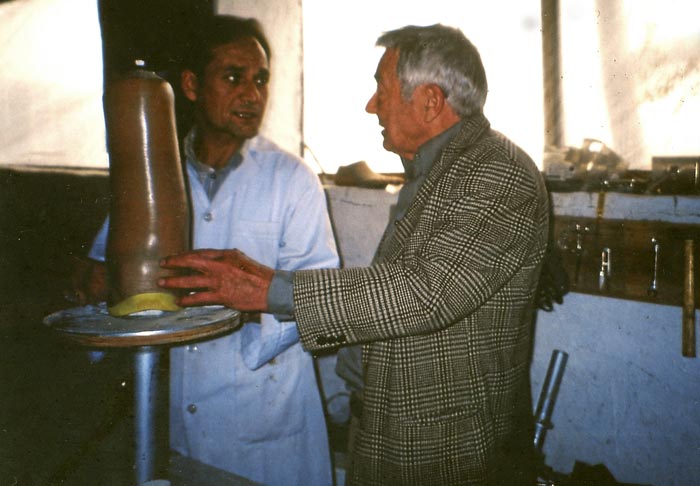 Rudolph Jaerschky is getting informed by Wali Nawabi on the work of the orthopaedic workshop. In Kabul the orthopaedic workshops were our main interest. We visited the workshop of Wali Nawabi and witnessed the operation of the Kabul Orthopaedic Organisation that is cooperating with Wali Nawabi. We were impressed by the commitment of the staff and the quality of their work.